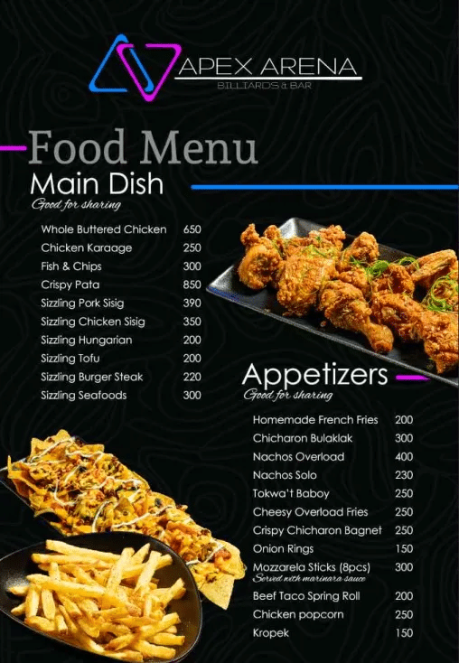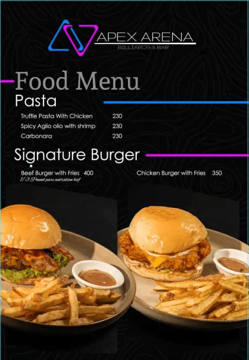 Hungry for more than just a game? Our Kitchen & Bar is your ultimate destination! Feast on our mouthwatering menu and cheers with friends, all while enjoying a thrilling round of billiards. Get ready for an evening of flavor, fun, and competitive cues.